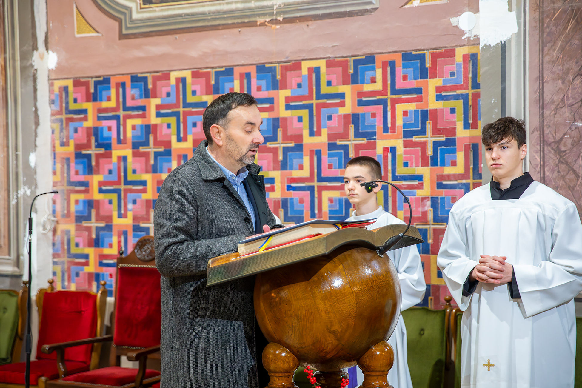 Poštovani i dragi vjernici, poštovana gđo Ministrice Nina Obuljen Koržinek, gđo Marice Mikec, poštovani izvođači iz firme Tehnika, poštovani gradonačelniče Javore Bojane Leš, draga Sanja Tomšić Dvorneković, dragi župniče Branko Koretiću, draga braćo i sestre,