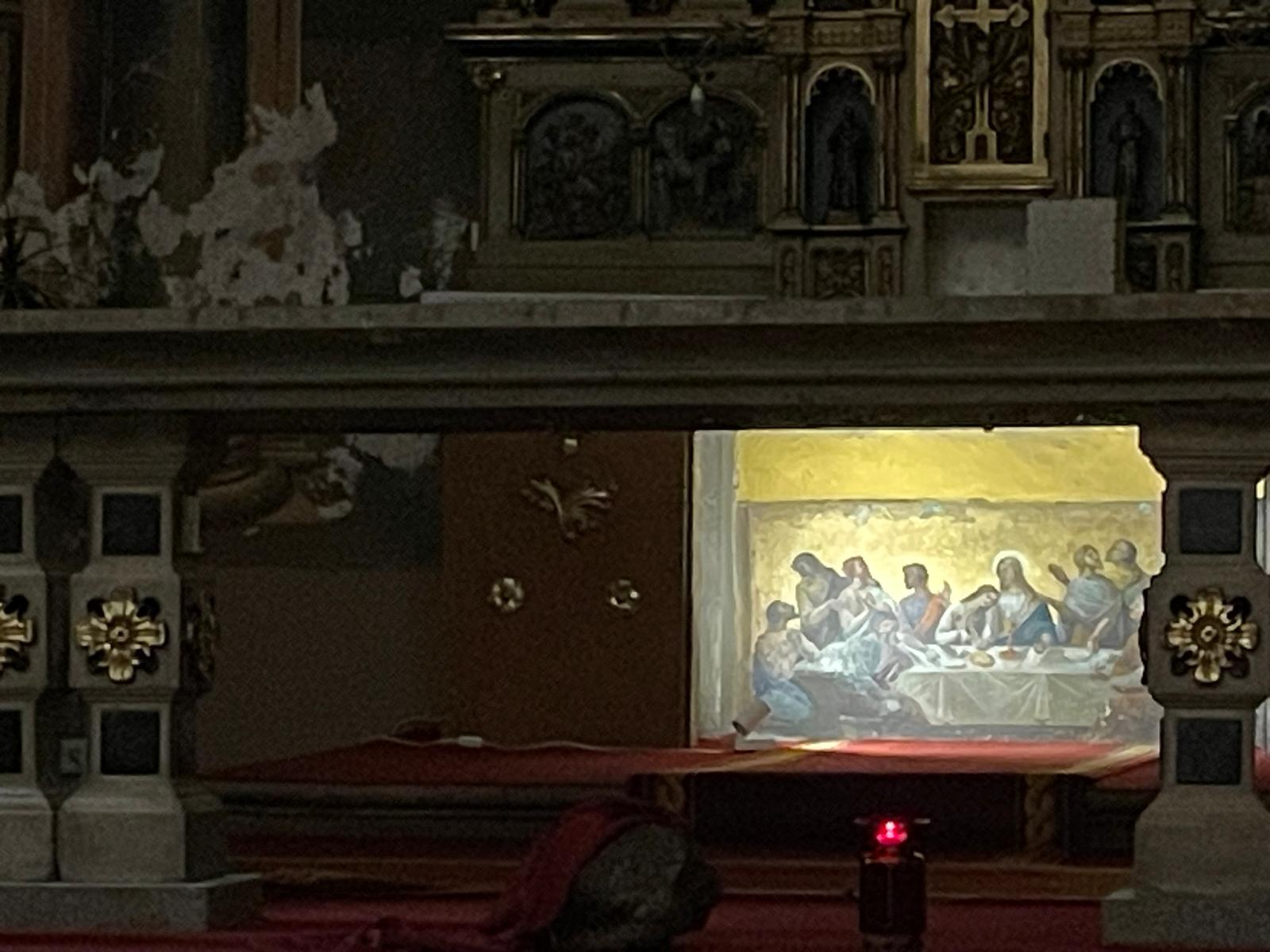 Nakon obreda pranja nogu uslijedila je euharistijska služba, a na kraju mise prijenos Svetog otajstva u pokrajnji oltar. Bogoslovi, Luis i Freddy su ogolili glavni oltar, svečanim načinom slaganja oltarnika, a time se prikazuje uvod u dolazeći dan Velikog petka, dan Isusove muke i smrti. Župna je zajednica ostala u kratkom poklonu, a potom se veliki broj vjernika opet okupio u 22 sata, na Getsemansku uru meditirajući nad sedam Isusovih riječi izgovorenih na križu. Getsemansku uru predvodio je župnik Branko Koretić uz uključivanje čitača.