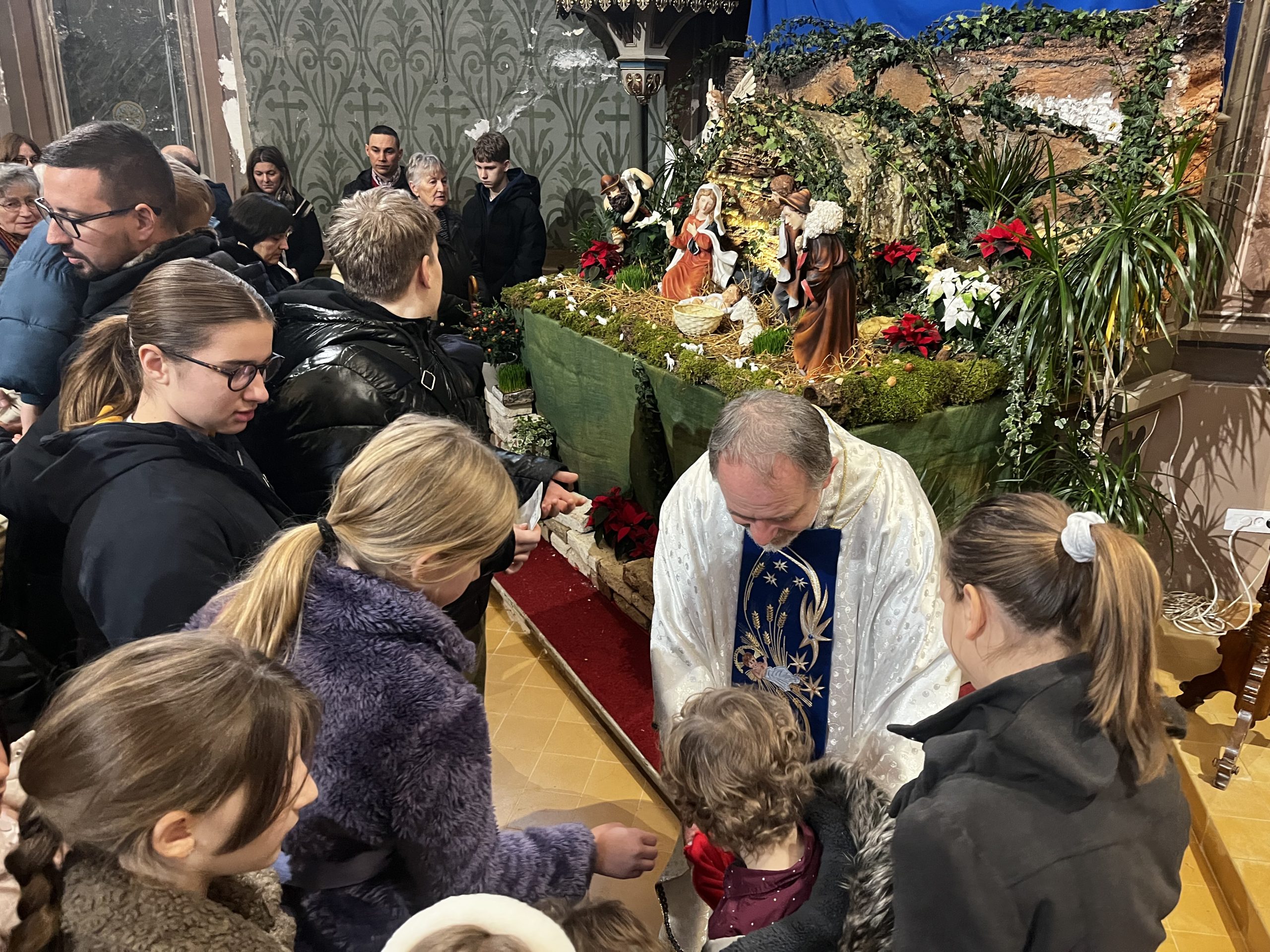I veliki, mješoviti zbor predvođen svojom voditeljicom Magdalenom pripremio je ugodan duhovno-glazbeni program prije velike mise Polnoćke. U okićenoj crkvi, pod blagim svijetlom, božićnim pjesmama su oraspoložili srca vjernika za sudjelovanju u najvećom Božanskom daru; euharistiji po kojoj nam se Gospodin u svakom slavlju uvijek iznova daruje i dopušta da blagujući ga postajemo jedno s njim.